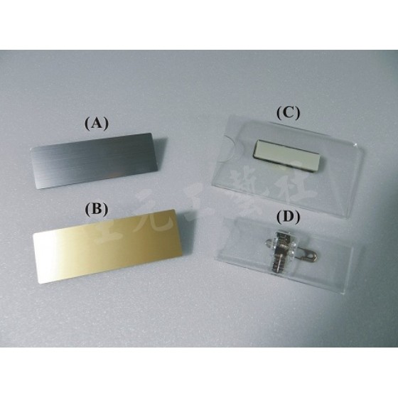 C.透明插紙式名牌夾為名片大小,尺寸為9cm*5.5cm,背面配件可選用磁鐵式或別針式